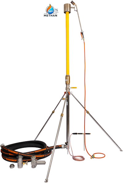 Vorgeschalteter Druckminderer über den ein max. Erdgasdruck von 16 bar auf 5 bar reduziert wird, um die Gas-Ausblase/ Abfackelvorrichtung auch bei max. 16 bar sicher einsetzen zu können.